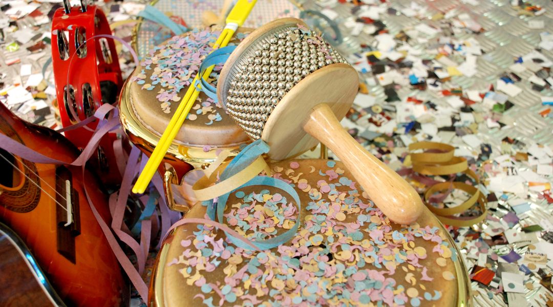 Préparez également un fond musical festif avec les grands classiques du Carnaval et autres chansons populaires appréciées des résidents. La musique contribuera grandement à installer une atmosphère joyeuse et conviviale. Vous pouvez aussi diffuser des bruitages rigolos de temps en temps (lancé de confettis, clip clap, sifflets…).
